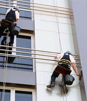 Чтобы убрать высолы с кирпичных стен, бетона, могут потребоваться услуги альпинистов (исключение составляют только одно-двухэтажные строения). При выполнении расчета стоимости учитывается высотность здания, особенности его архитектуры, наличие сложных для подъема участков.